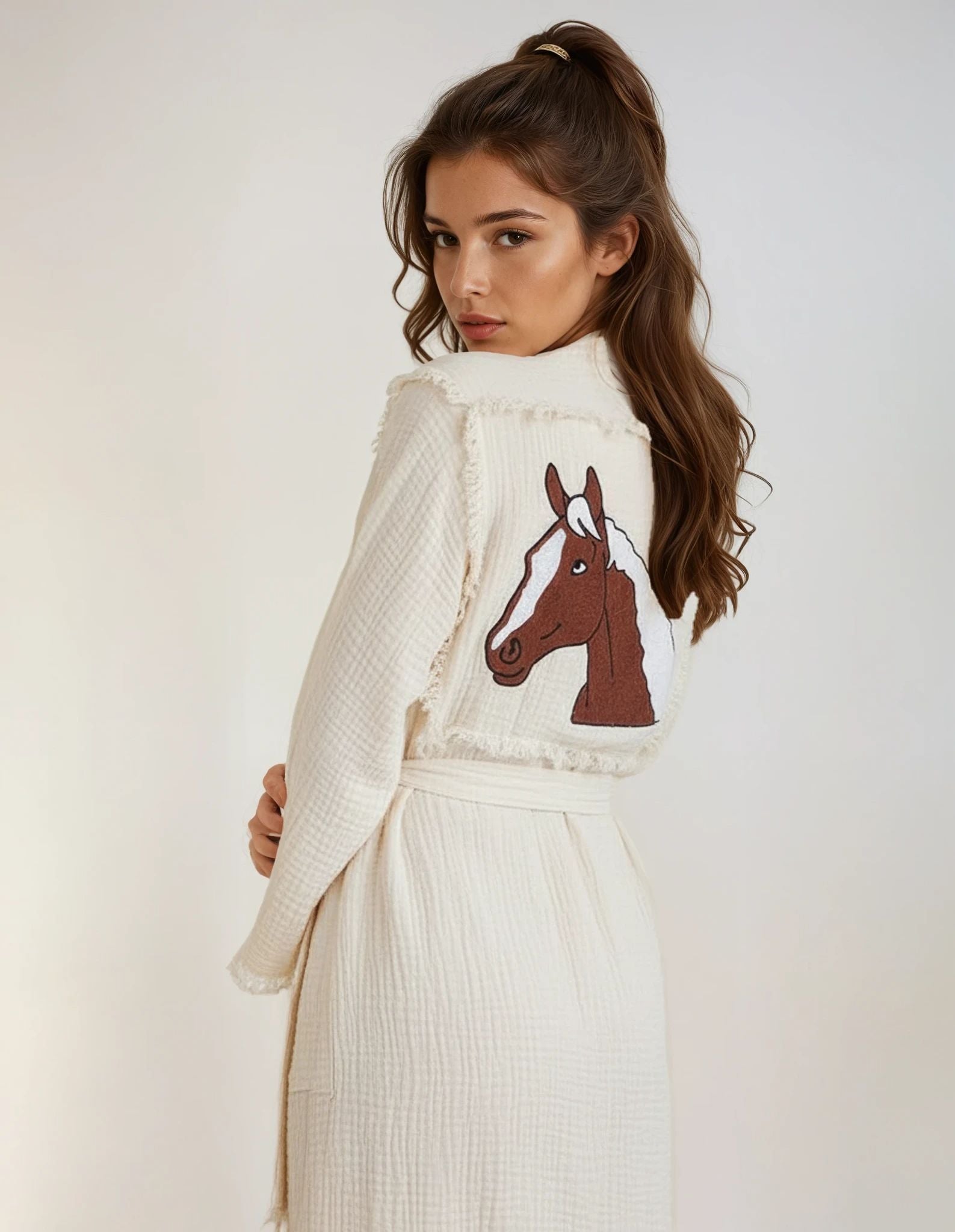 Aria Off-White Handmade Cotton Evil Eye Kimono Robe