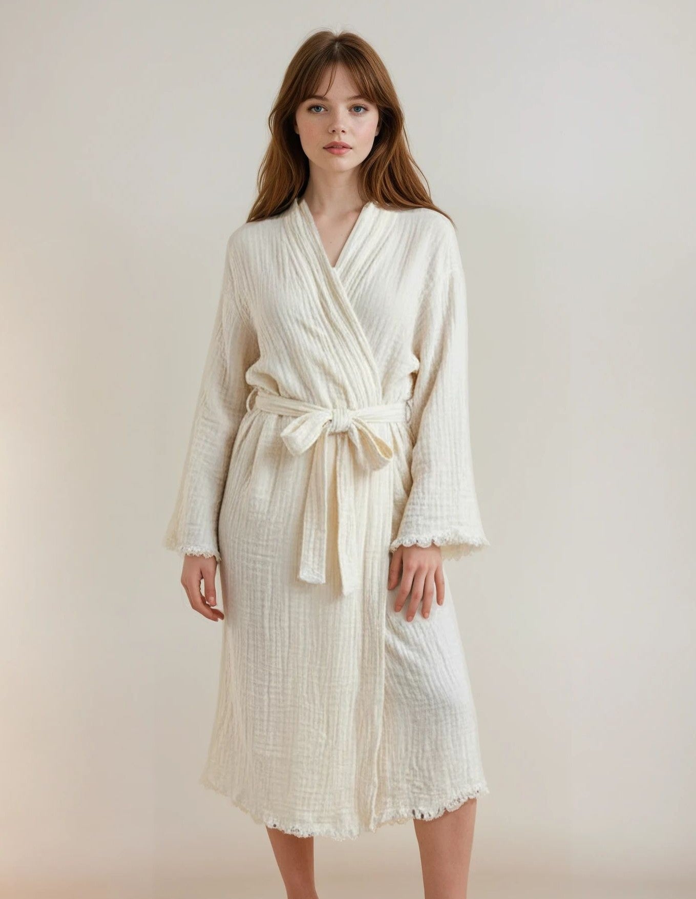 Each image is thoughtfully designed to capture the free-spirited essence of our kimonos. Gentle variations may appear — especially in tassels and length — as every piece drapes uniquely on each body. We recommend checking the measurements before making your selection.